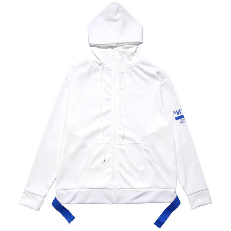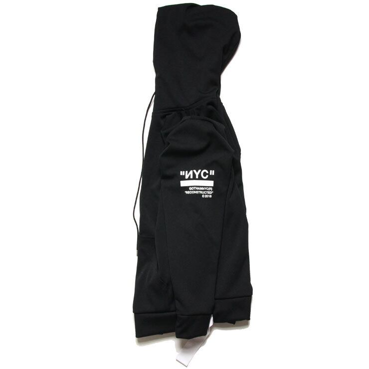腕にはGOTHAMのNYCロゴを落とし込み、リブ部分にアクセントとなるサイドベルトを施したジャージジップパーカー。